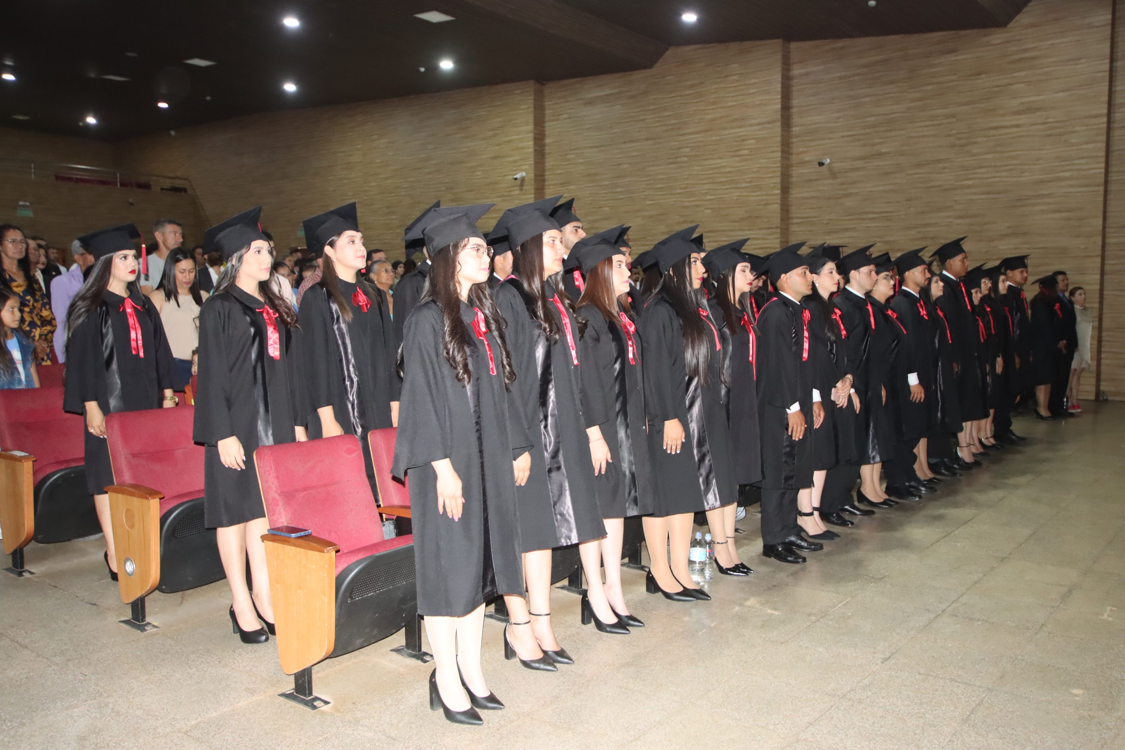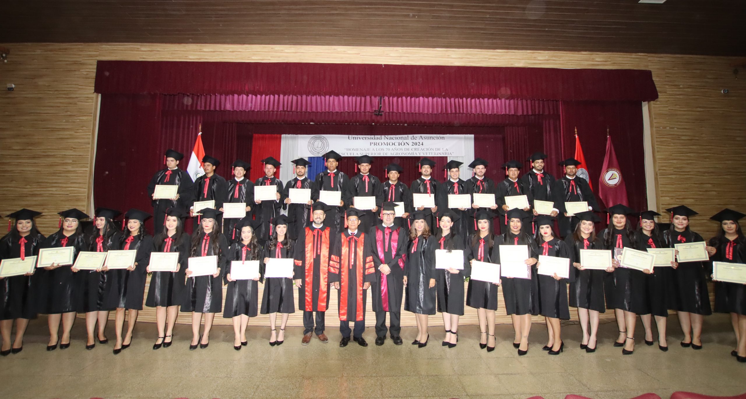Profesionales de la carrera de Medicina Veterinaria de la Facultad de Ciencias Veterinarias de la Universidad Nacional de Asunción (FCV-UNA), filial Concepción, recibieron sus títulos de grado durante la ceremonia de colación realizada el 10 de octubre en el Teatro Municipal de la capital departamental.