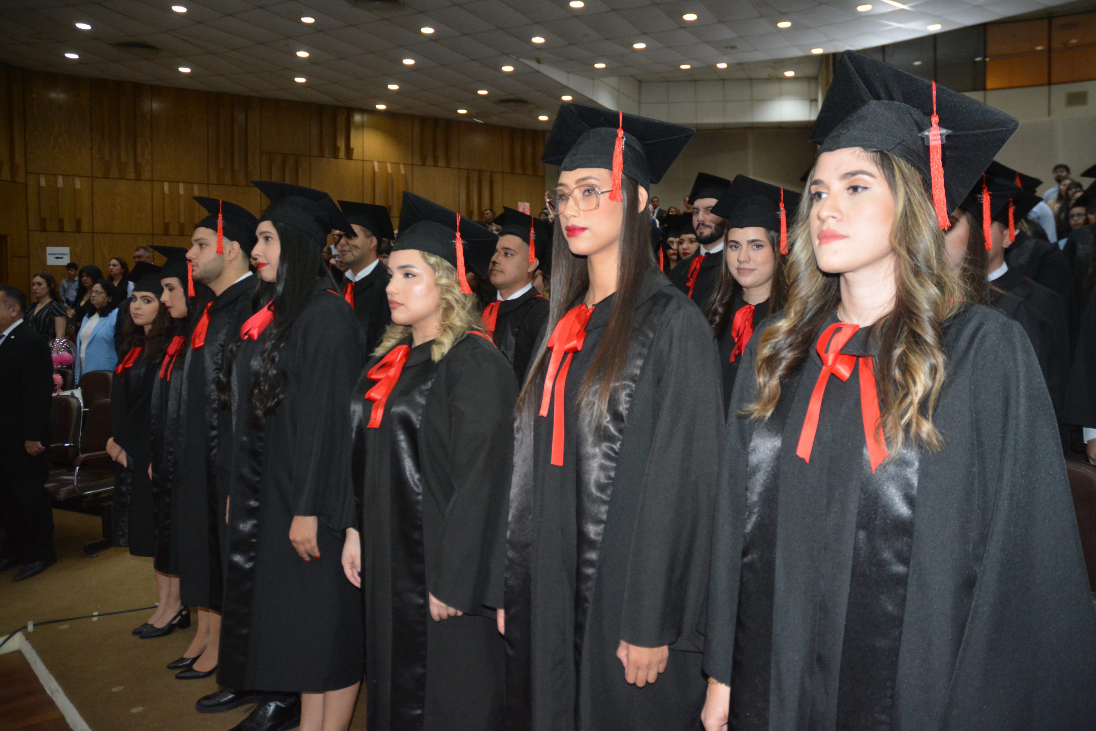 Profesionales de la carrera de Derecho de la Facultad de Derecho y Ciencias Sociales de la Universidad Nacional de Asunción (FDCS-UNA) recibieron sus títulos de grado durante la ceremonia de colación realizada en el Centro de Convenciones del rectorado, en el campus de San Lorenzo, el martes 14 de octubre.