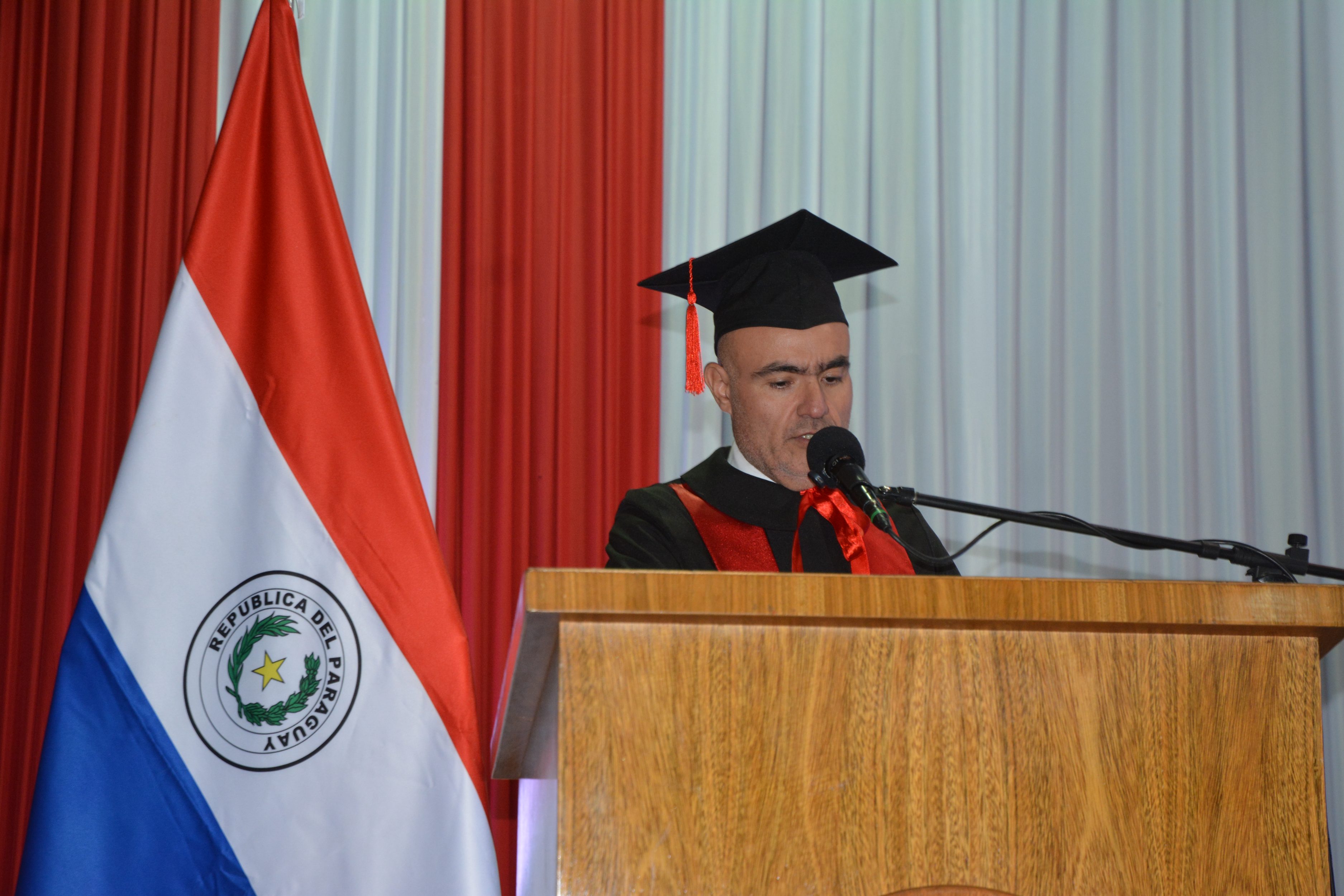 El decano se refirió a las y los profesionales como la “nueva y vigorosa savia” que coadyuvará a la transformación de la sociedad. Les felicitó por culminar la carrera y, en ese sentido, expresó su satisfacción personal como decano de la institución. Finalmente, les instó a la formación continua y les deseó éxitos en su vida profesional.