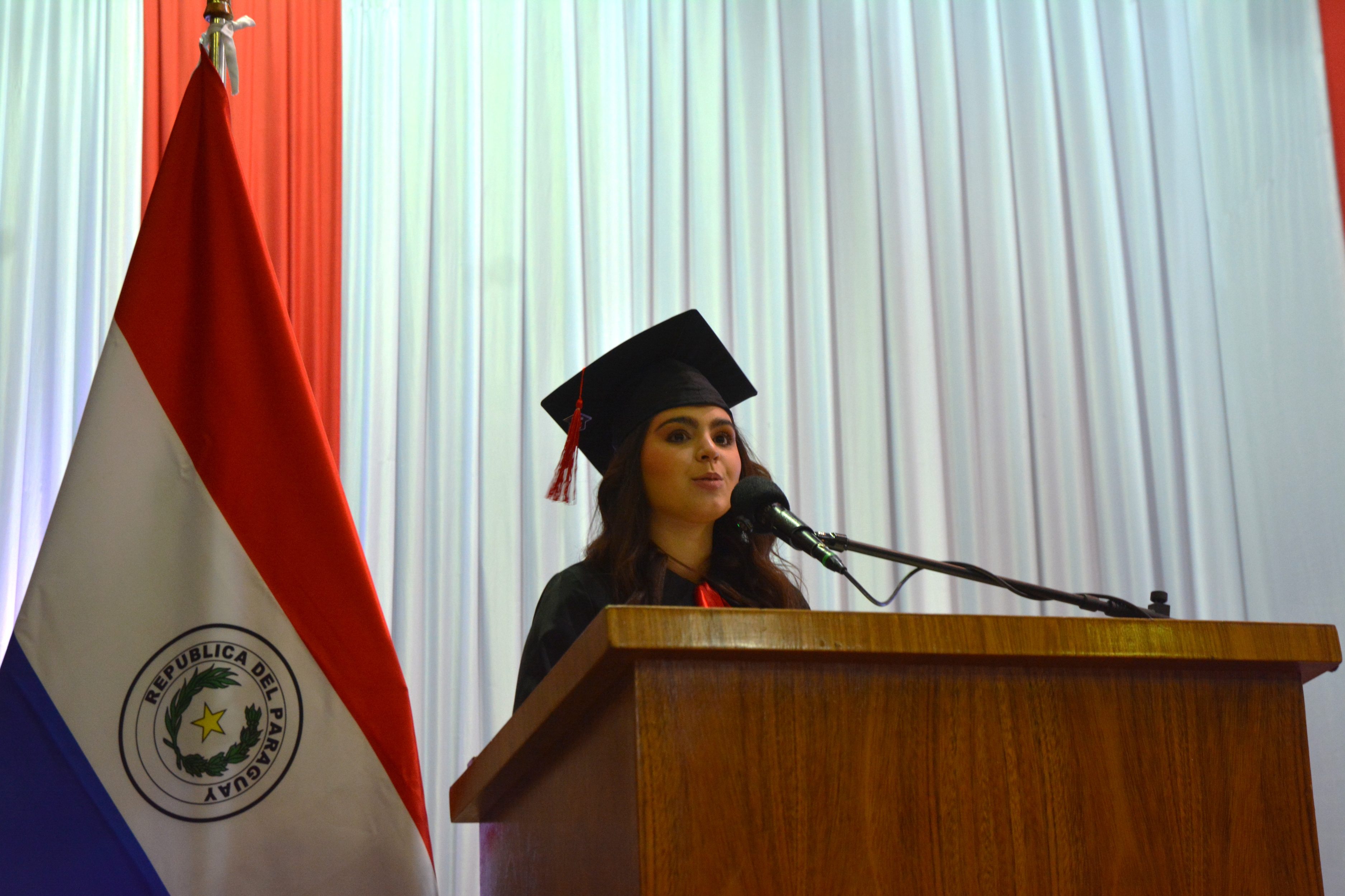 Cabe destacar que la Abogada Iara María Jazmín Rivas Soto, graduada distinguida, fue la encargada de dirigir un discurso en representación de sus colegas.