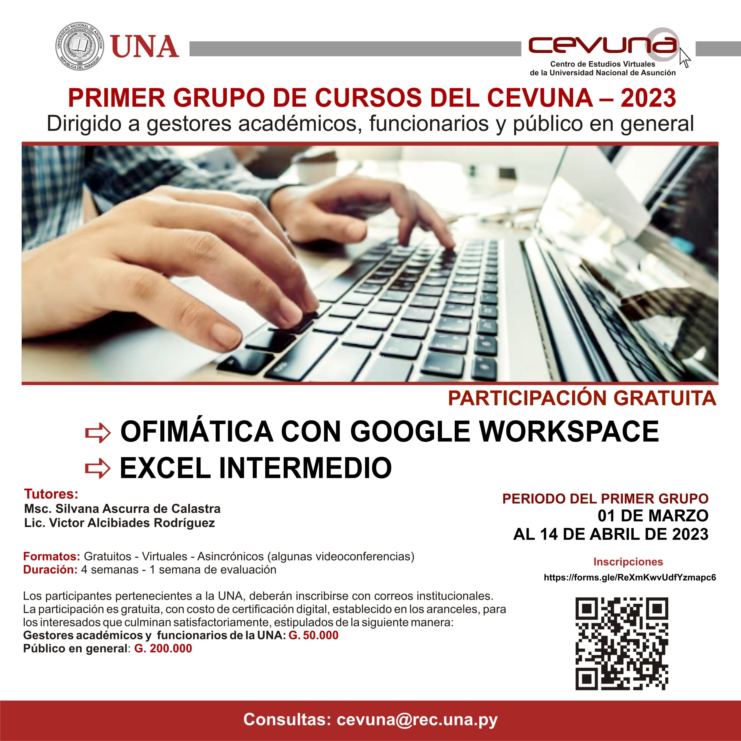 El Centro de Estudios Virtuales de la Universidad Nacional de Asunción (CEVUNA), dependiente de la Dirección General Académica, convoca a docentes, así como también a gestores académicos y funcionarios a realizar cursos de actualizaciones en herramientas virtuales.