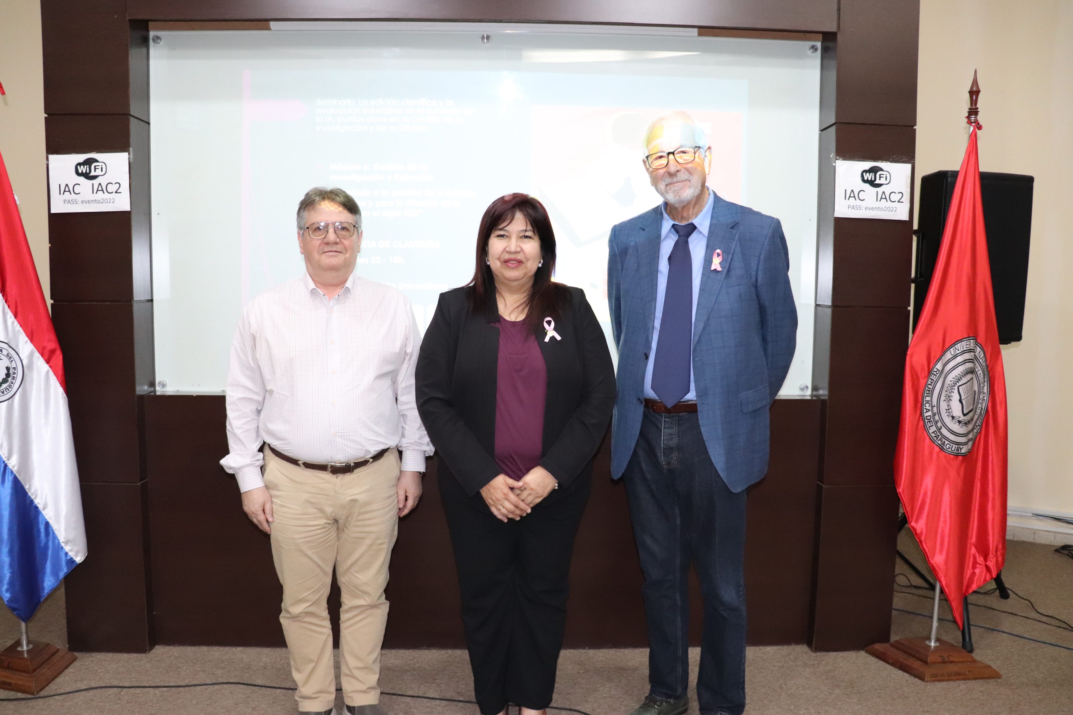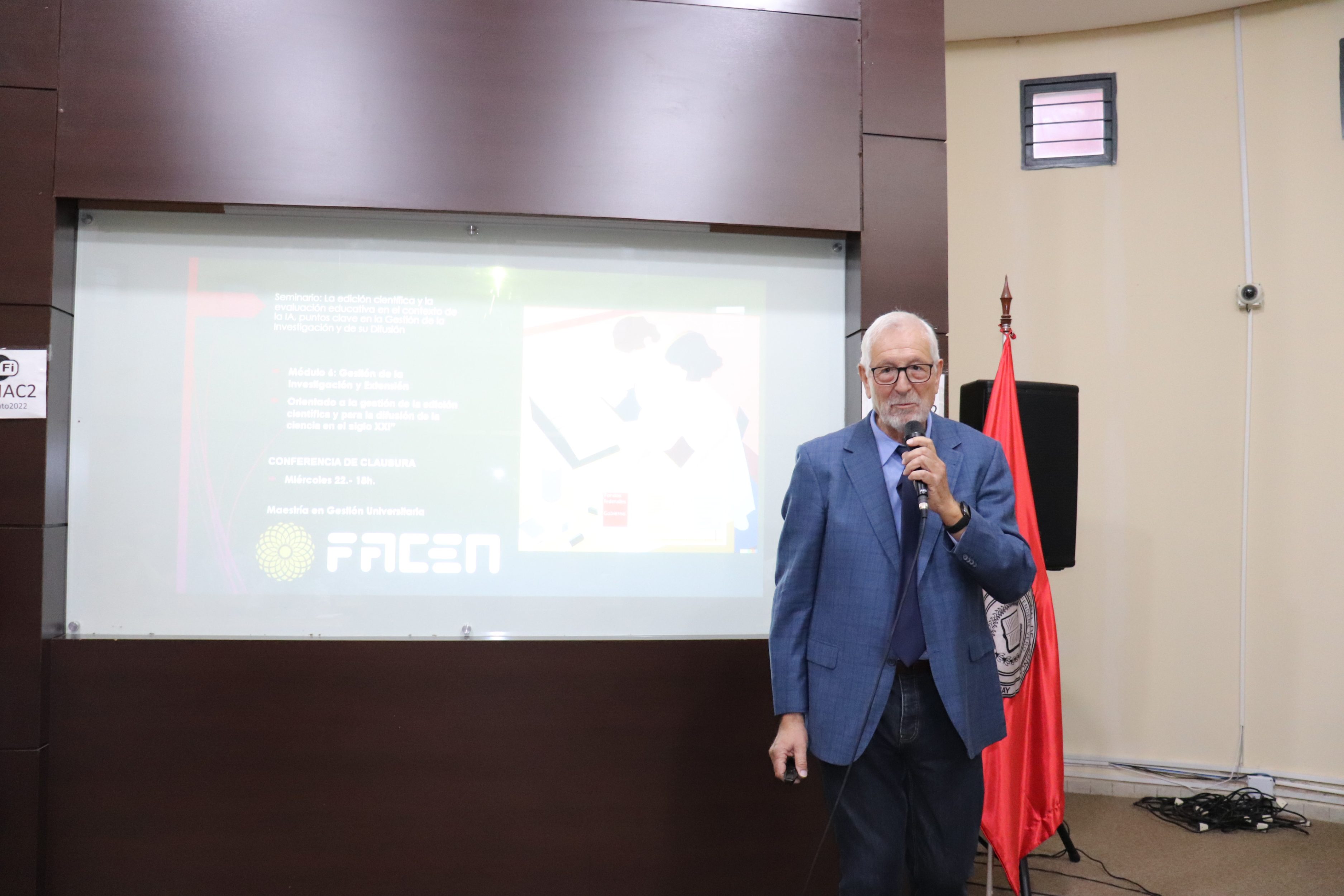Con la participación de destacadas autoridades universitarias, se llevó a cabo la conferencia de clausura del “Seminario Internacional. La edición científica y la evaluación educativa en el contexto de la IA: puntos clave en la gestión de la investigación en las universidades”, organizado por la Maestría en Gestión Universitaria de la Facultad de Ciencias Exactas y Naturales de la Universidad Nacional de Asunción (FACEN-UNA).