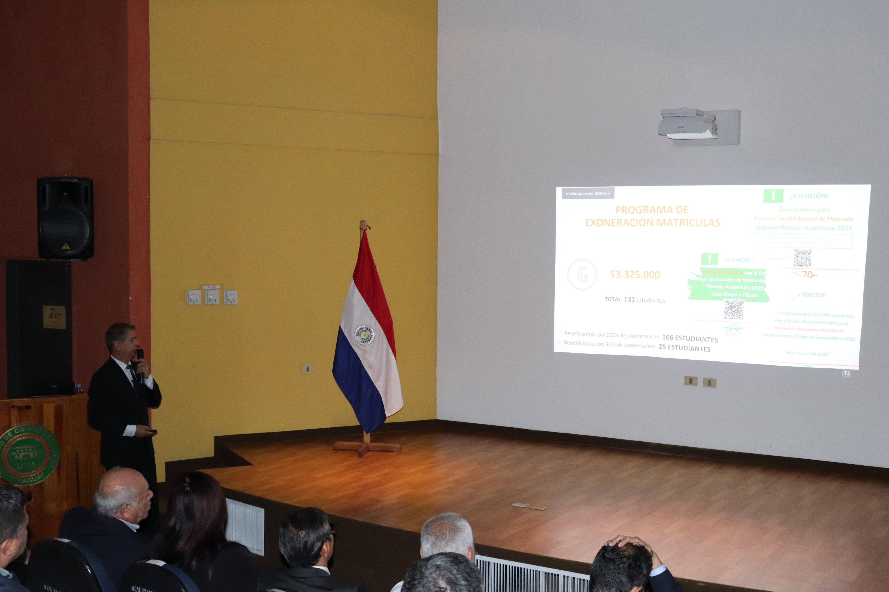 Durante la presentación, el decano de la FCA-UNA destacó los logros académicos y científicos del periodo, el fortalecimiento de la infraestructura y tecnología educativa, así como el compromiso institucional con la responsabilidad social y las alianzas estratégicas nacionales e internacionales. Señaló que estas acciones consolidan la calidad educativa y el liderazgo de la facultad.