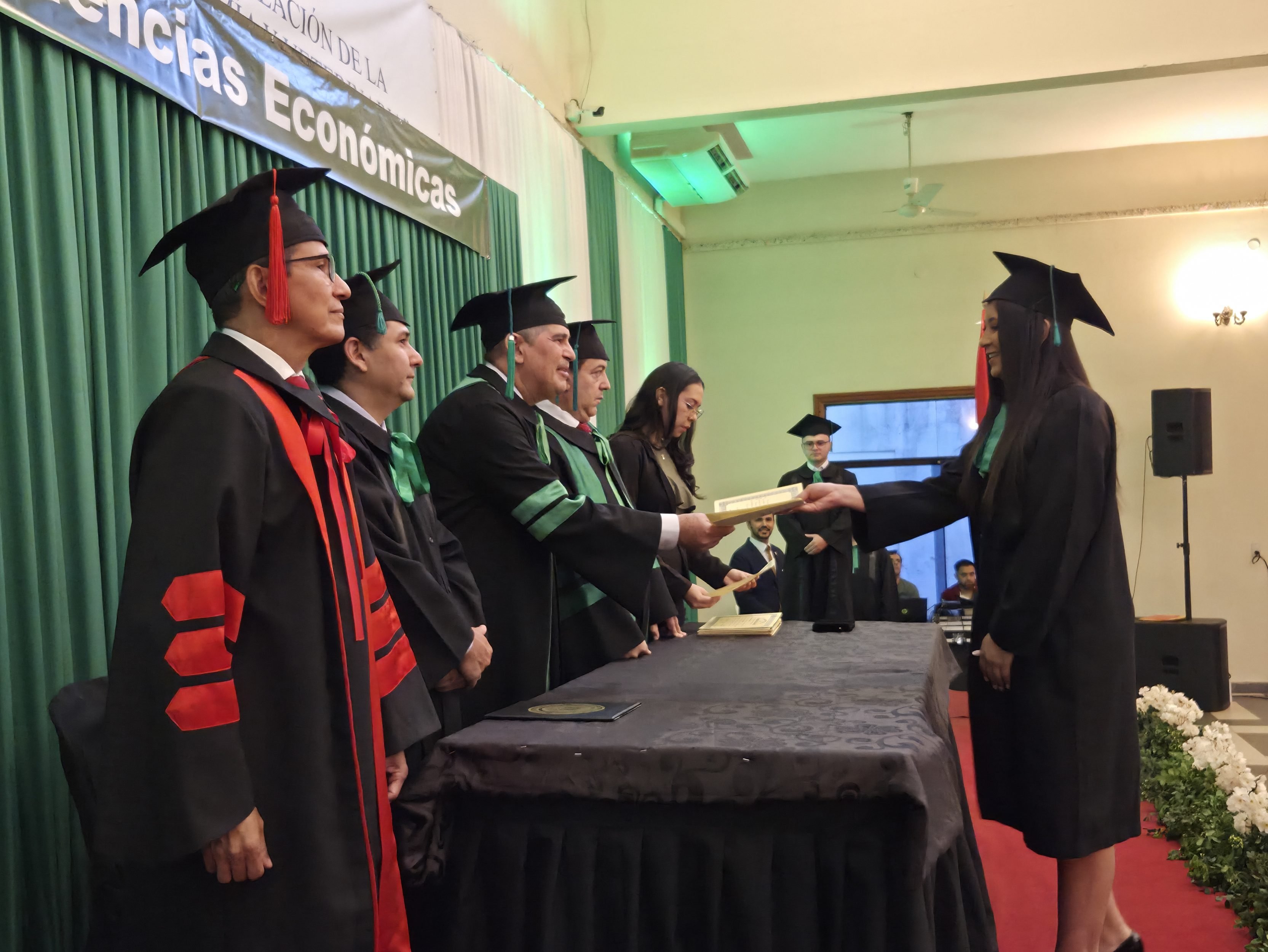 Profesionales de las carreras de Administración y Contaduría Pública de la Facultad de Ciencias Económicas de la Universidad Nacional de Asunción (FCE-UNA), filial Villarrica del Espíritu Santo, recibieron sus títulos durante una ceremonia de colación que se celebró el martes 25 de noviembre en el Club El Porvenir Guaireño, de la ciudad.