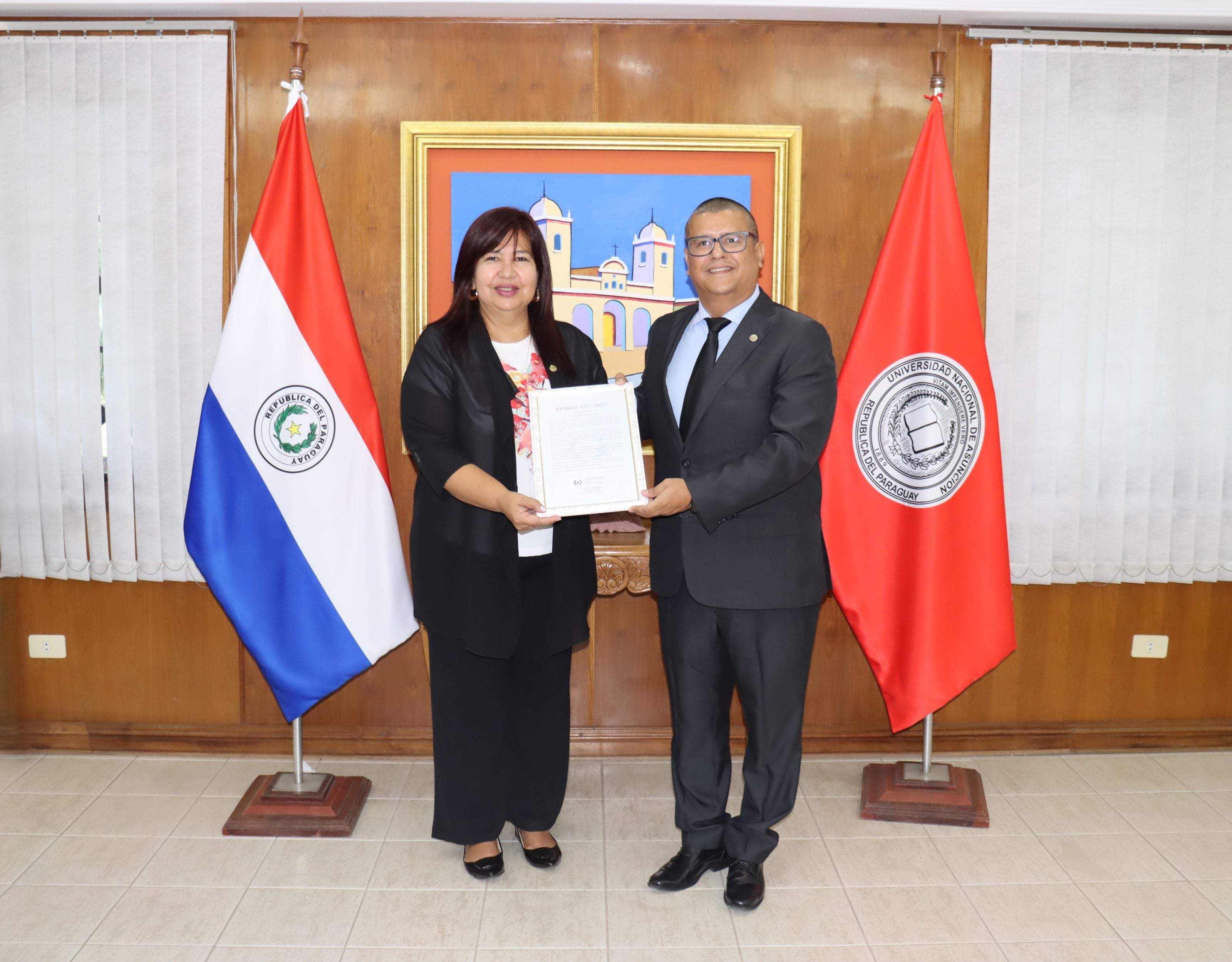 Durante el acto de entrega, el Prof. Dr. Jorge Madelaire Alarcón, director general de Planificación y Desarrollo (DGPD-UNA) , hizo entrega oficial de la certificación a la Prof. Dra. Zully Vera de Molinas, rectora de la UNA, destacando así el trabajo coordinado entre las unidades académicas mediante la Red de Planificadores, las dependencias del Rectorado, y el acompañamiento técnico del MEF.