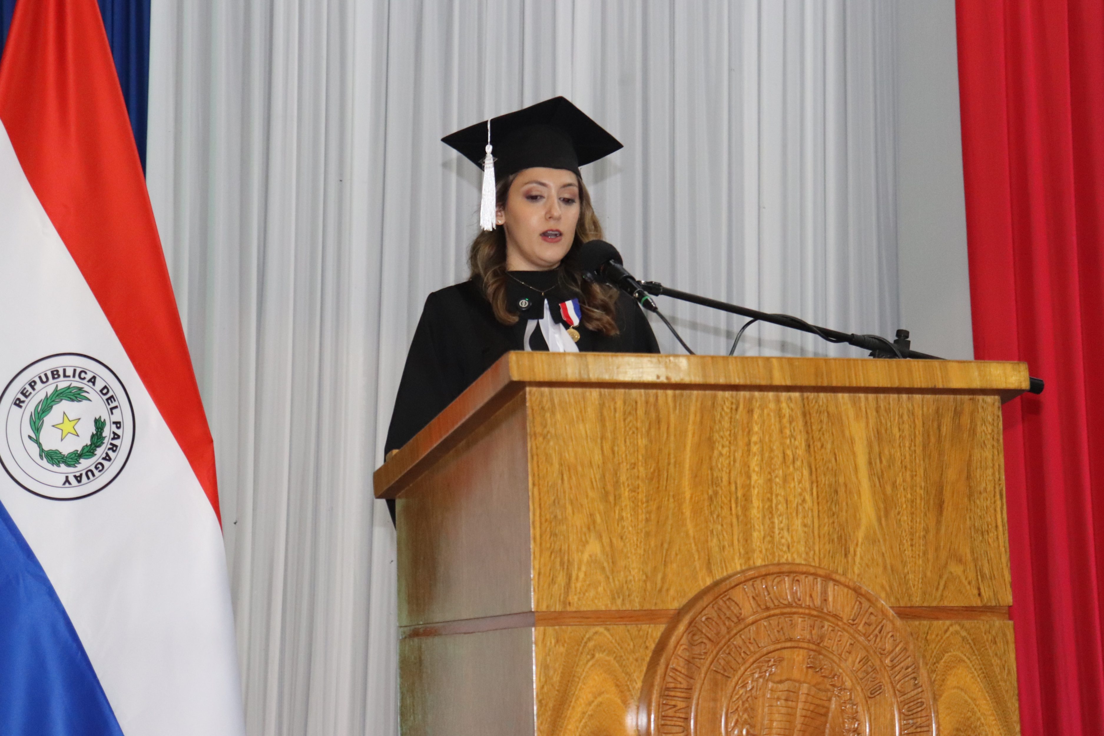 Cabe destacar que la Ingeniera en Sistemas de Producción Lucía Sara Inés Parodi Smith, con promedio de 5,00, mejor graduada de la facultad, fue la encargada de dirigir un discurso en representación de sus colegas.