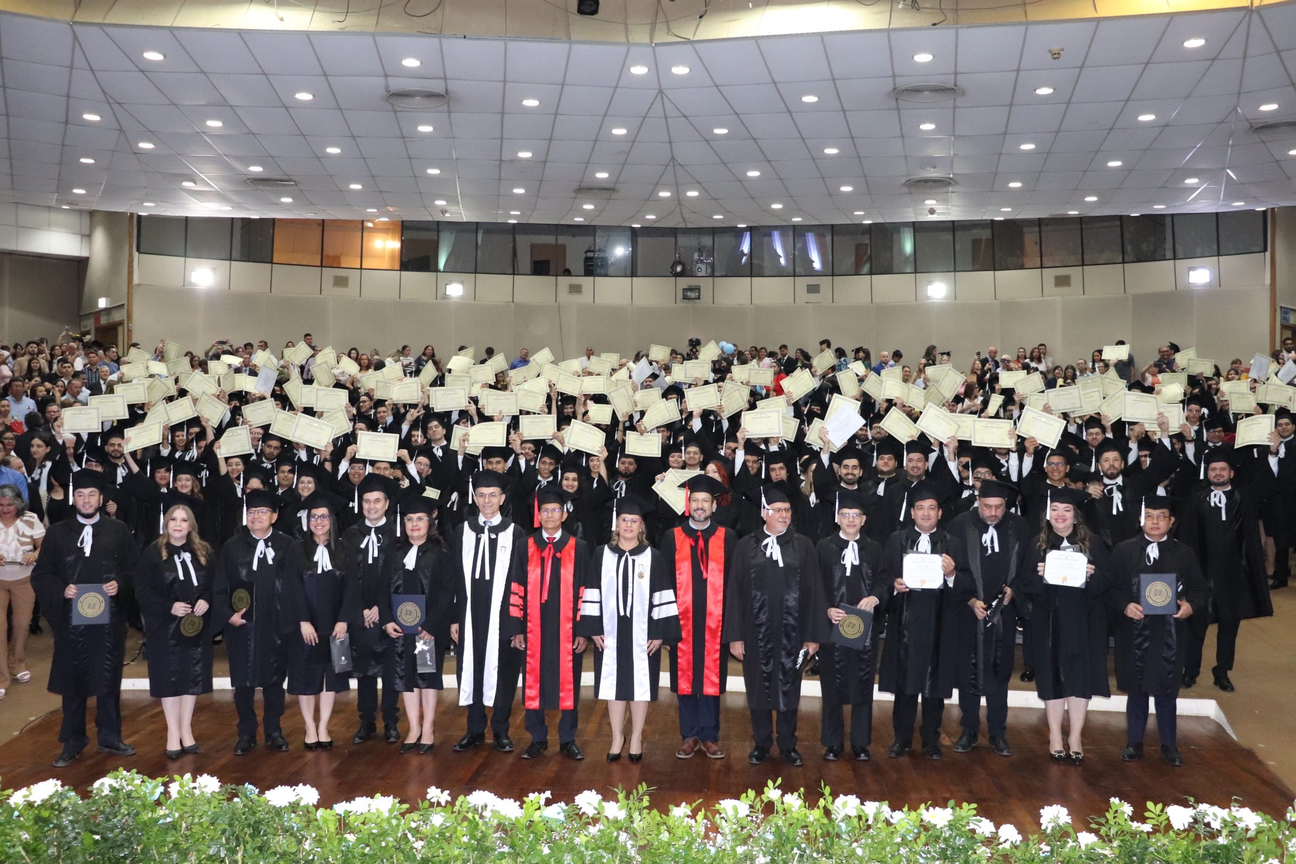 Profesionales de las carreras de ingenierías en Sistemas de Producción, Informática, Electrónica, Electricidad, Marketing, Ciencias de los Materiales, Aeronáutica y Energía y; licenciaturas en Ciencias de la Información, Ciencias Informáticas, Electricidad y Gestión de la Hospitalidad de la Facultad Politécnica de la Universidad Nacional de Asunción (FP-UNA) recibieron sus títulos de grado durante la ceremonia de colación realizada el 24 de octubre en el Centro de Convenciones del campus de San Lorenzo.