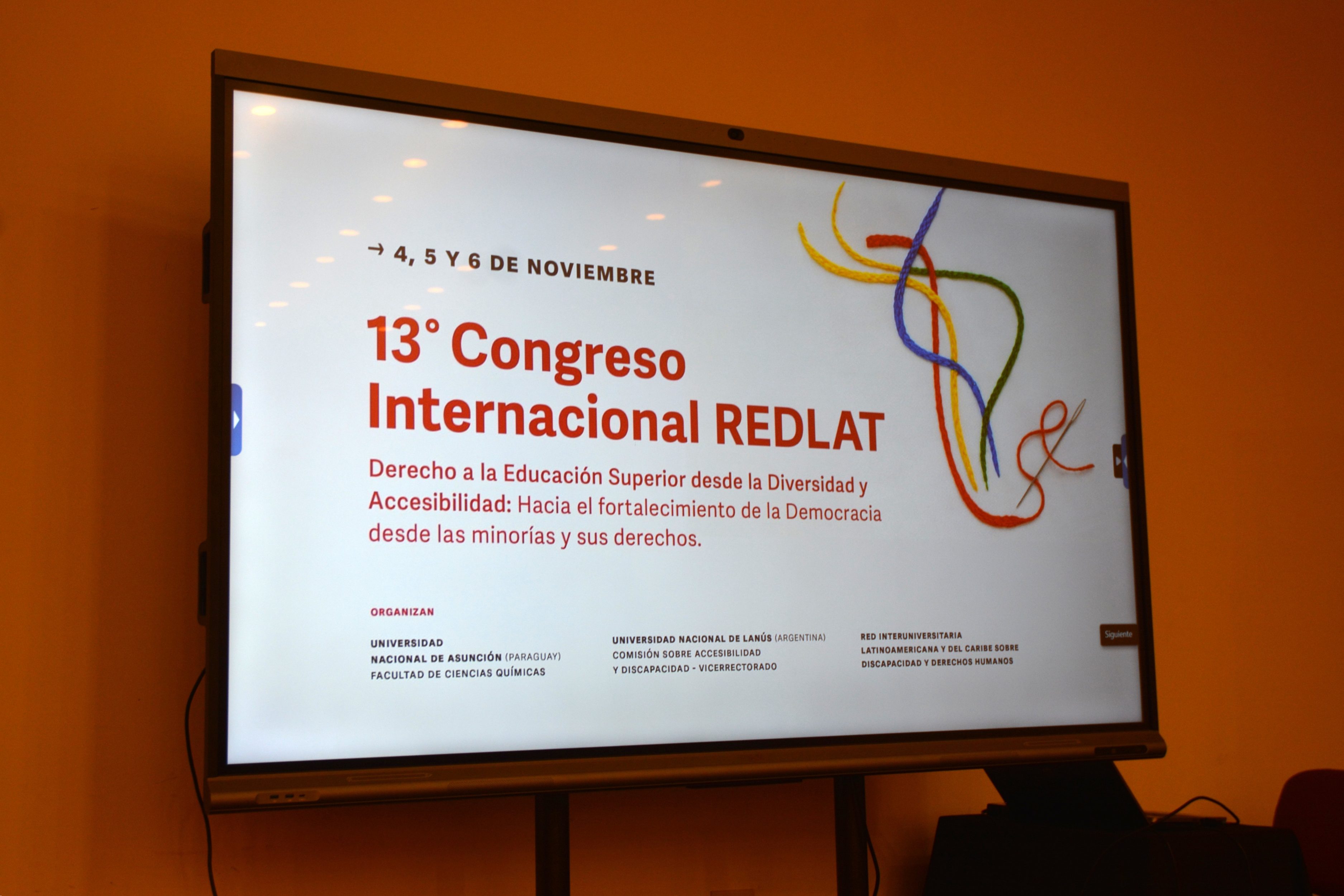 La Facultad de Ciencias Químicas de la Universidad Nacional de Asunción (FCQ-UNA) es sede del 13º Congreso Internacional de la REDLAT, denominado “Derecho a la Educación Superior desde la Diversidad y Accesibilidad: Hacia el fortalecimiento de la Democracia desde las minorías y sus derechos”, que se desarrolla del 4 al 6 de noviembre en el campus universitario de San Lorenzo, Paraguay.
