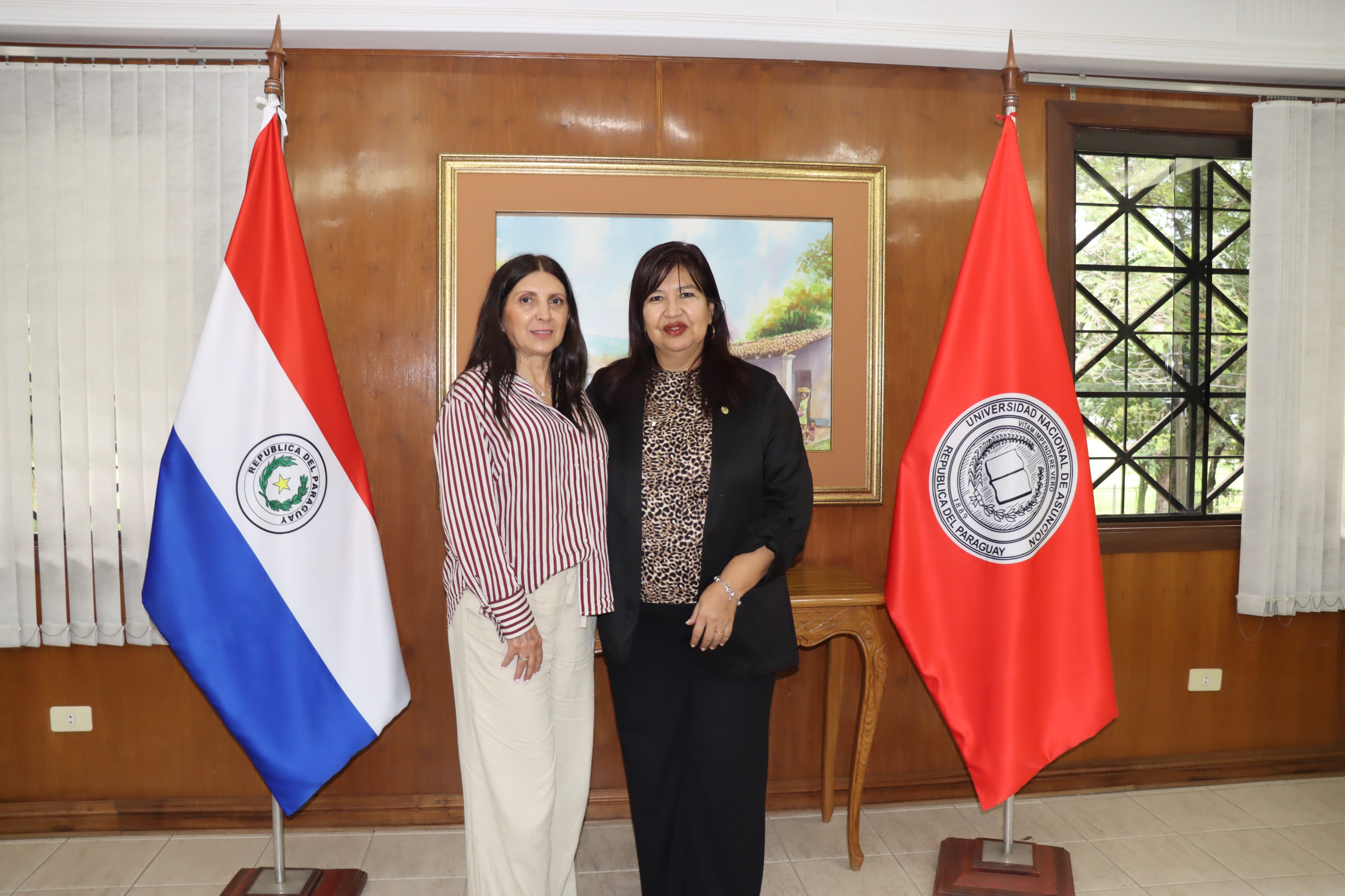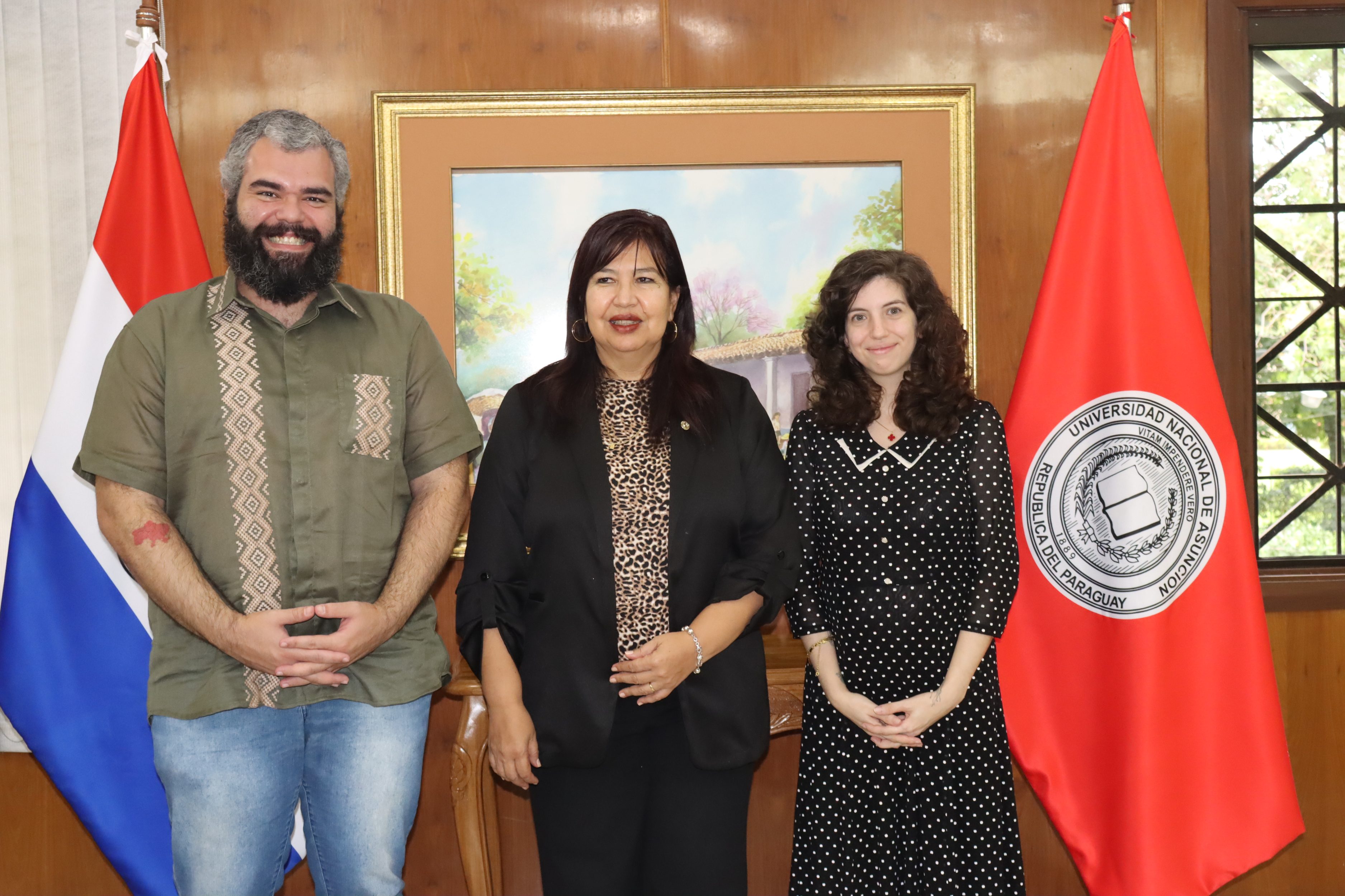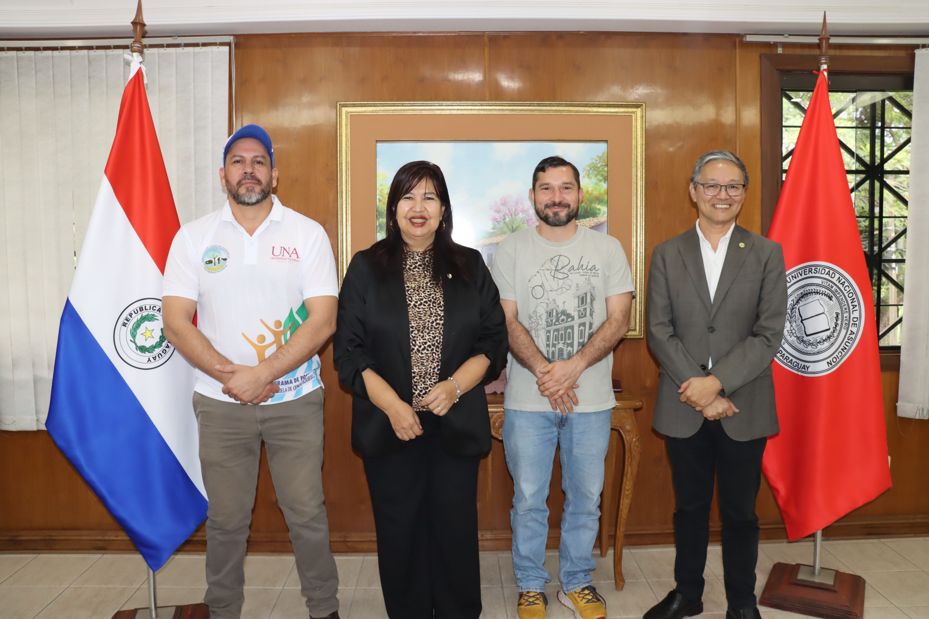En este marco, la Prof. Dra. Zully Vera de Molinas, rectora, de la UNA; recibió a representantes de comunidades académicas de América Latina. La comitiva institucional estuvo integrada además por el Dr. Héctor Nakayama, director general de Investigación Científica y Tecnológica (DGICT-UNA), y el Ing. Agr. Antonio Samudio Oggero, MSc., investigador del Centro Multidisciplinario de Investigaciones Tecnológicas (CEMIT-UNA).