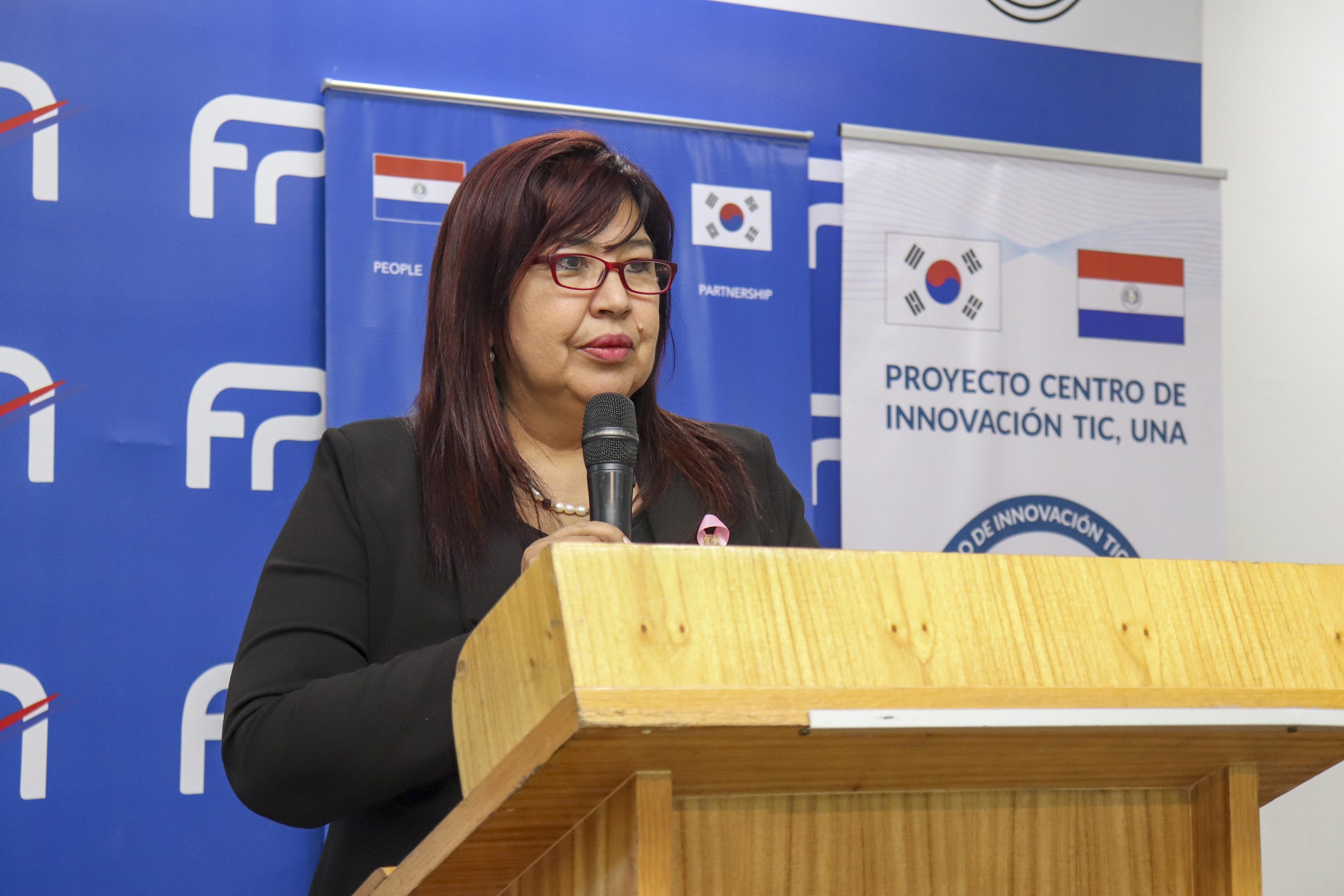 Participaron del acto la Prof. Dra. Zully Vera de Molinas, rectora de la UNA; el Prof. Mst. Claudio Nil Barúa, vicedecano de la FP-UNA; y el Lic. Juan Fernando Duré, director del Centro de Innovación TIC.