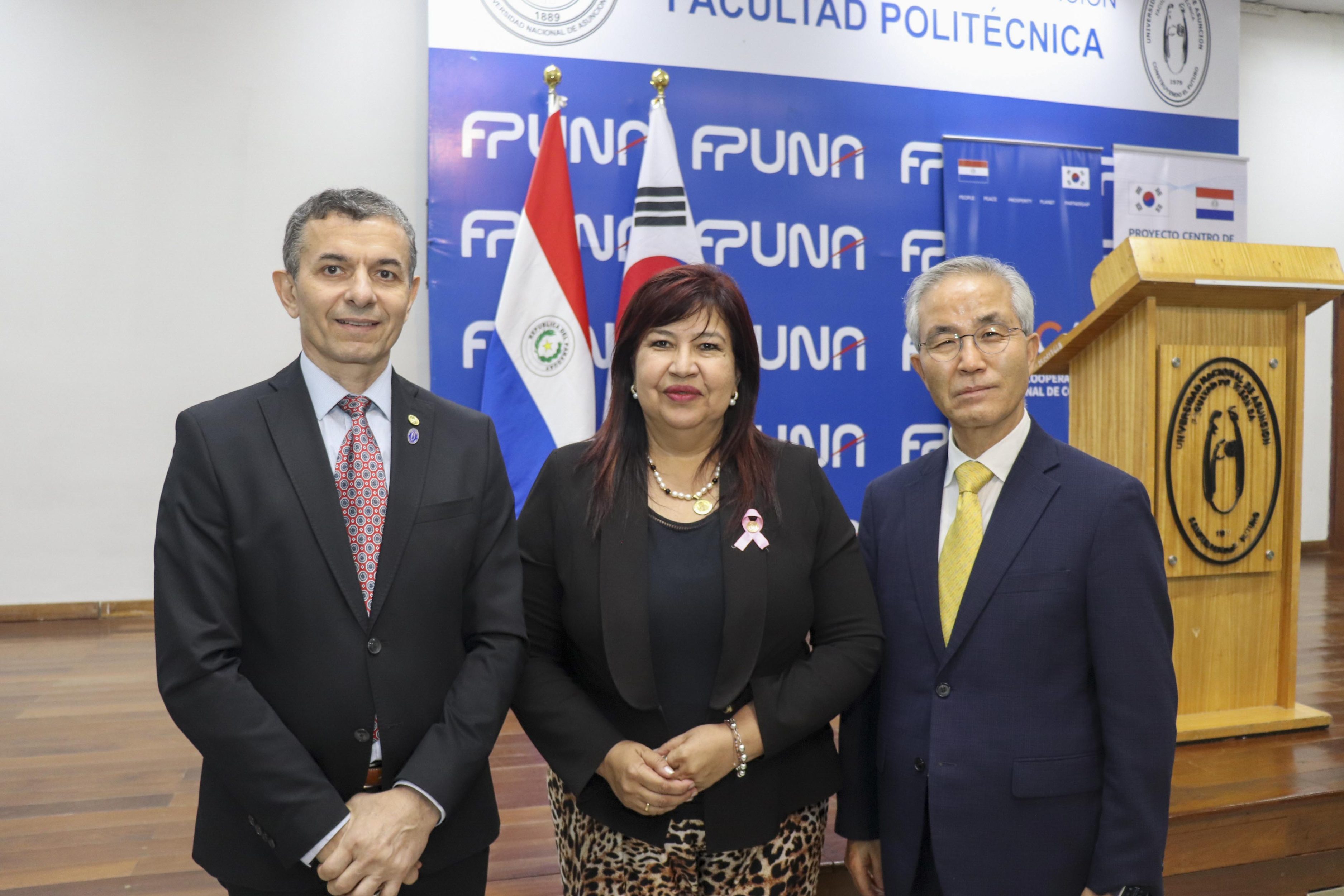 Asistieron además representantes de la KOICA, como la Sra. Yunjung Han, vicedirectora de la Oficina de KOICA en Paraguay; el Sr. Renato Rönnebeck, oficial de proyectos; el Prof. Young Beom Choi, gerente del proyecto; el Sr. Seungku Hwang, experto en Plan Maestro y Cooperación Industria-Academia; el Sr. Sungback Hong, experto en Investigación Conjunta; y la Sra. Hyein Shin, gerente de campo del proyecto.