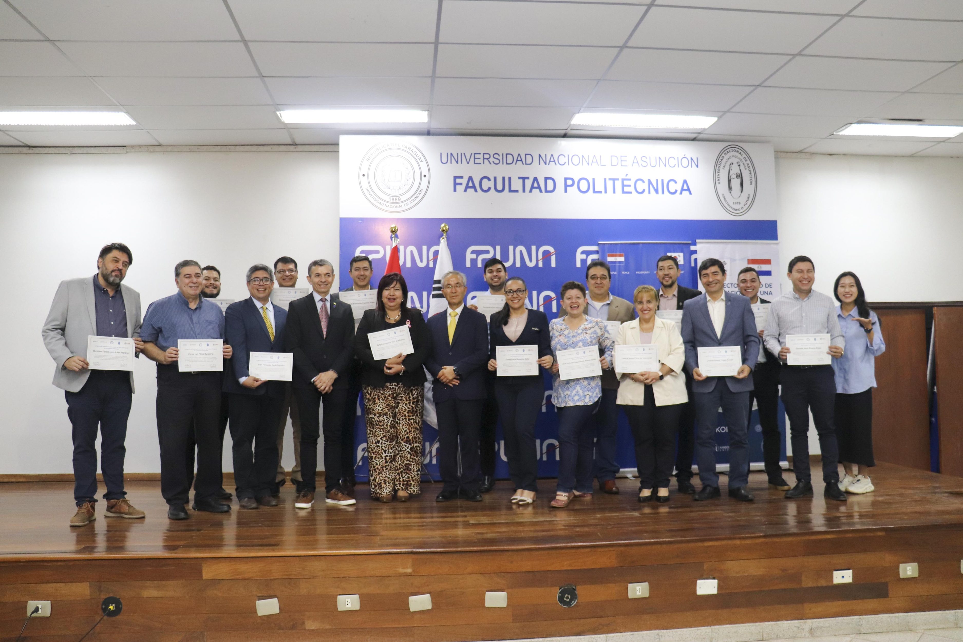 En el marco del Proyecto de Innovación TIC-UNA, se realizó la presentación de los resultados de la capacitación desarrollada en Corea del Sur. El encuentro tuvo lugar el 23 de octubre en el Aula Magna de la Facultad Politécnica de la Universidad Nacional de Asunción (FP-UNA), con la presencia de autoridades institucionales y representantes de la Agencia de Cooperación Internacional de Corea (KOICA).