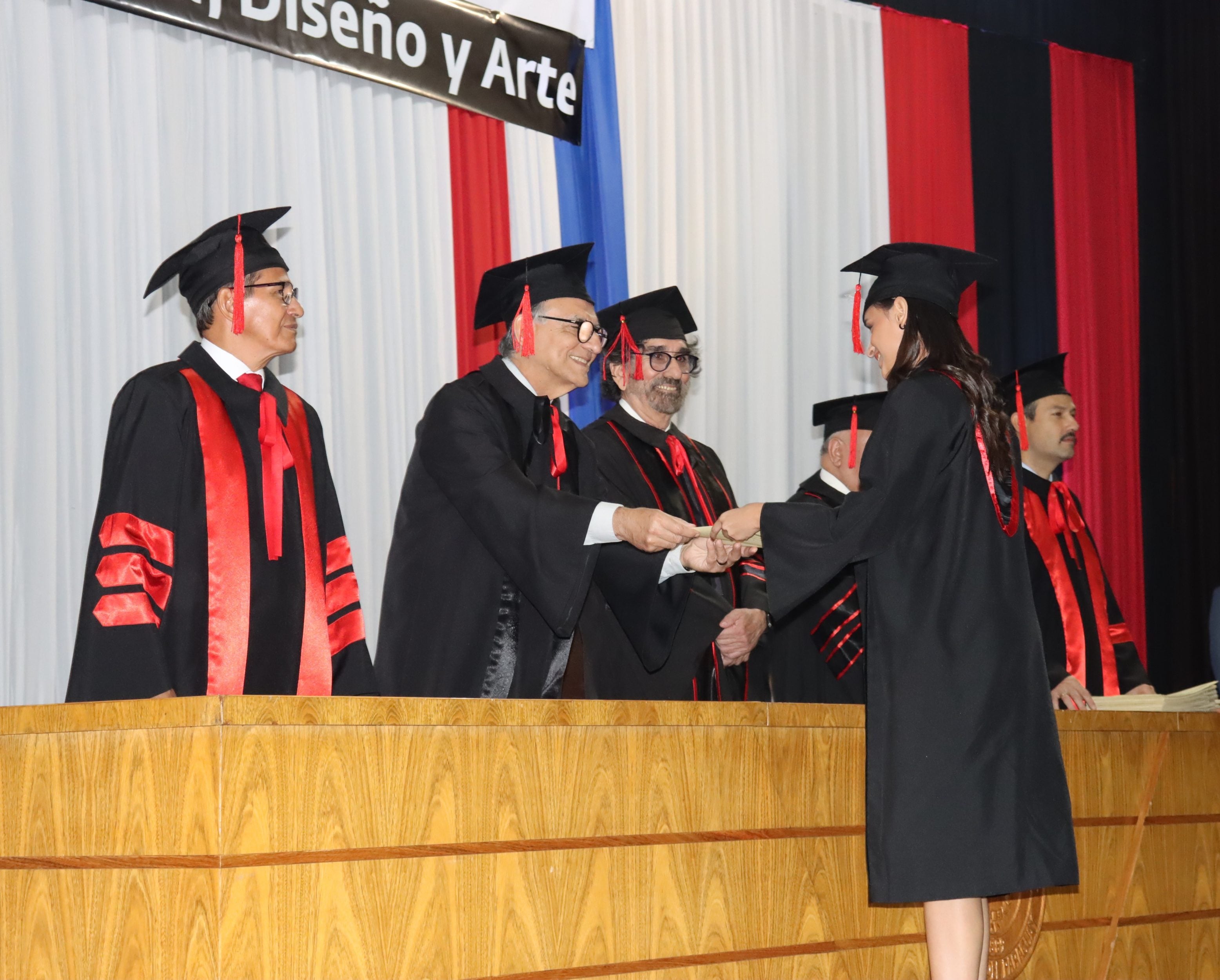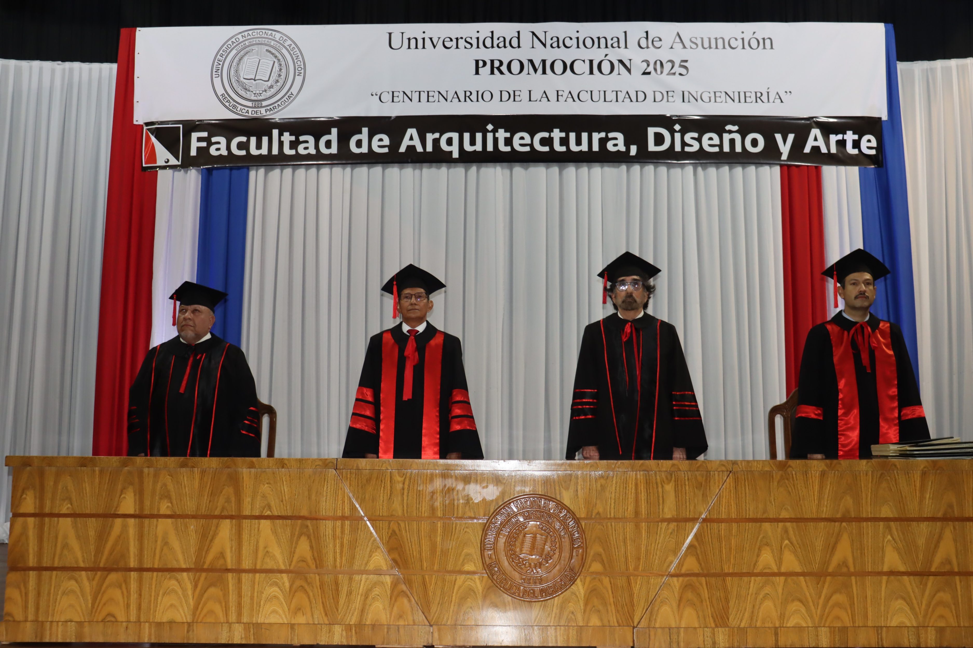 La ceremonia estuvo presidida por el Prof. Dr. Miguel Torres Ñumbay, vicerrector y rector en ejercicio de la UNA, acompañado por el Prof. Arq. José Gregorio Insfrán Guerrero, decano de la FADA-UNA; el Prof. Arq. Aníbal Salvador Maidana González, vicedecano; y el Ing. Quím. Cristian David Cantero Aquino, secretario general de la UNA.