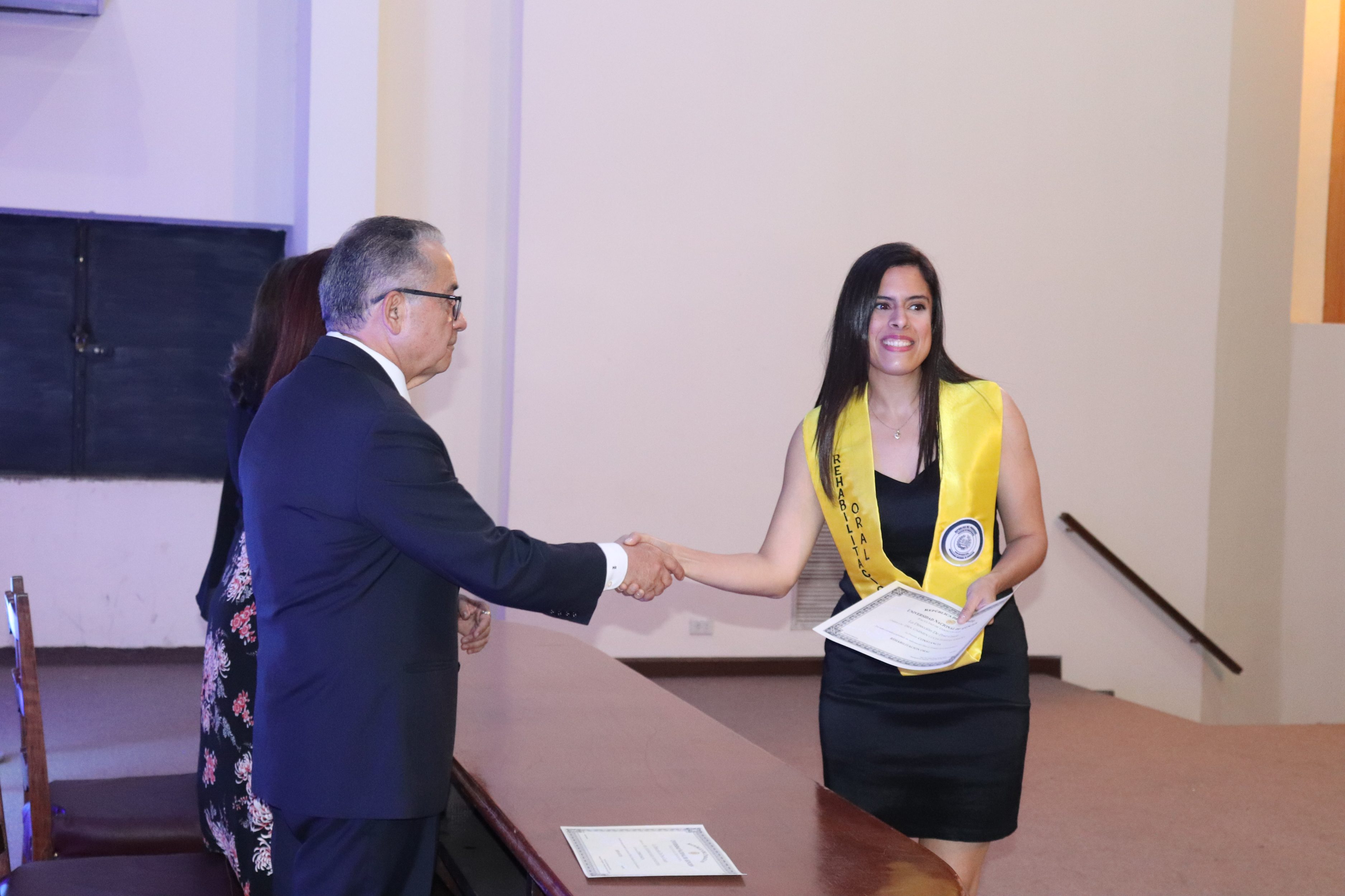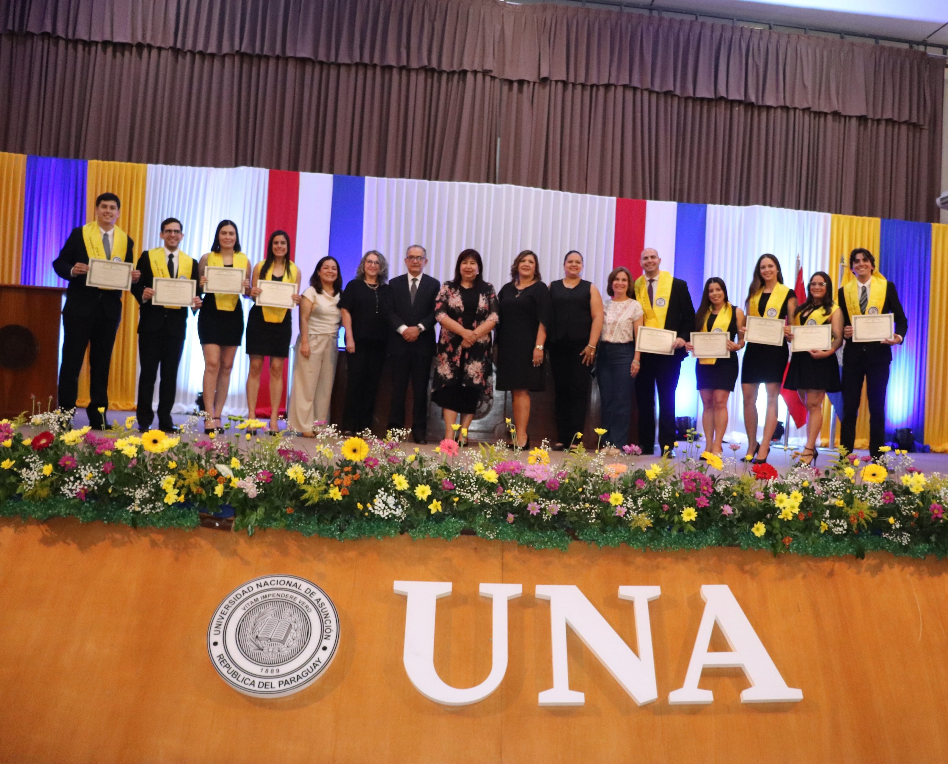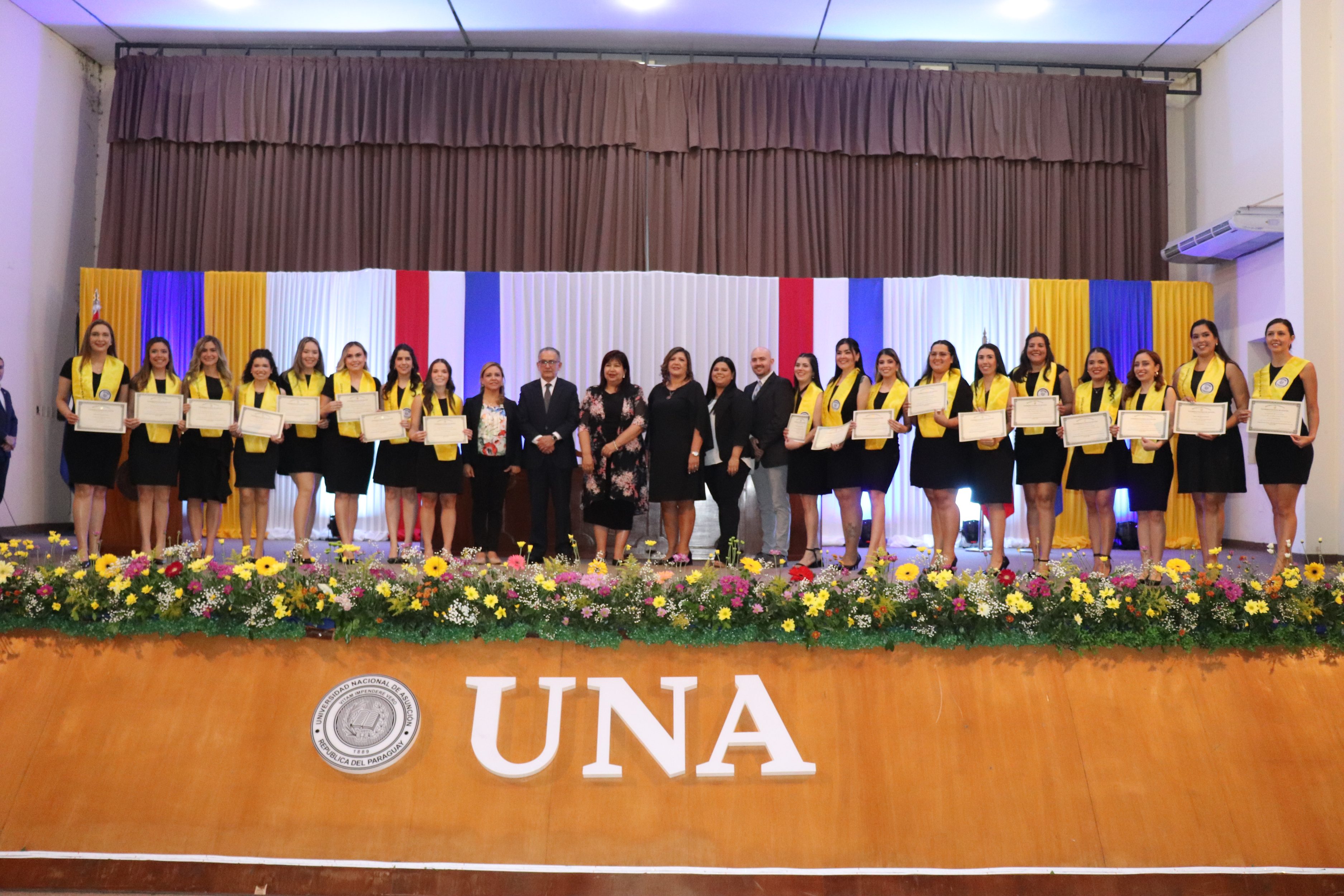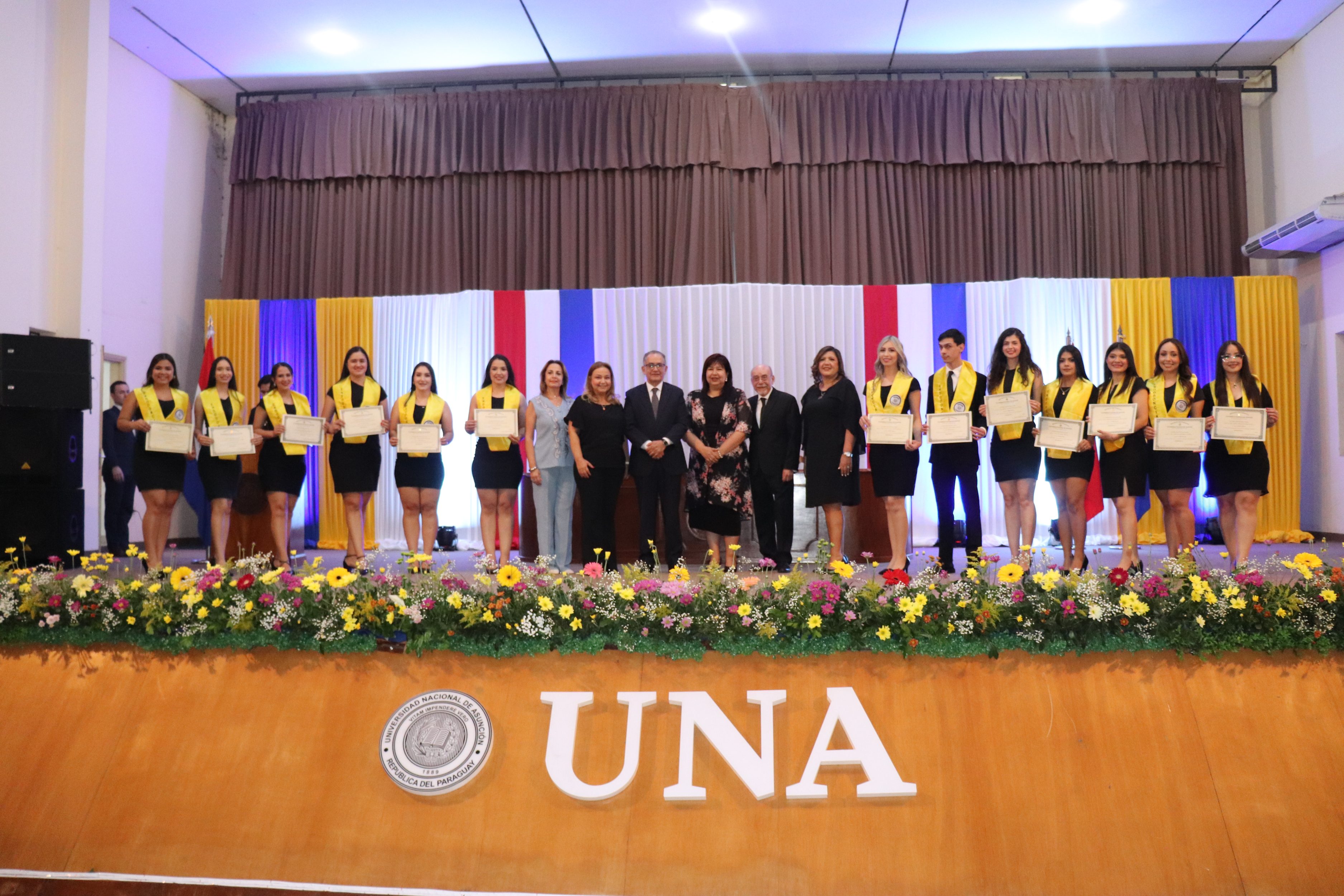 Profesionales de la carrera de Odontología de la Universidad Nacional de Asunción (FOUNA) recibieron sus títulos de postgrado durante un acto llevado a cabo en el salón auditorio “Prof. Dr. Luis H. Berganza”, de la Dirección General de Extensión Universitaria (DGEU-UNA), el sábado 20 de diciembre.