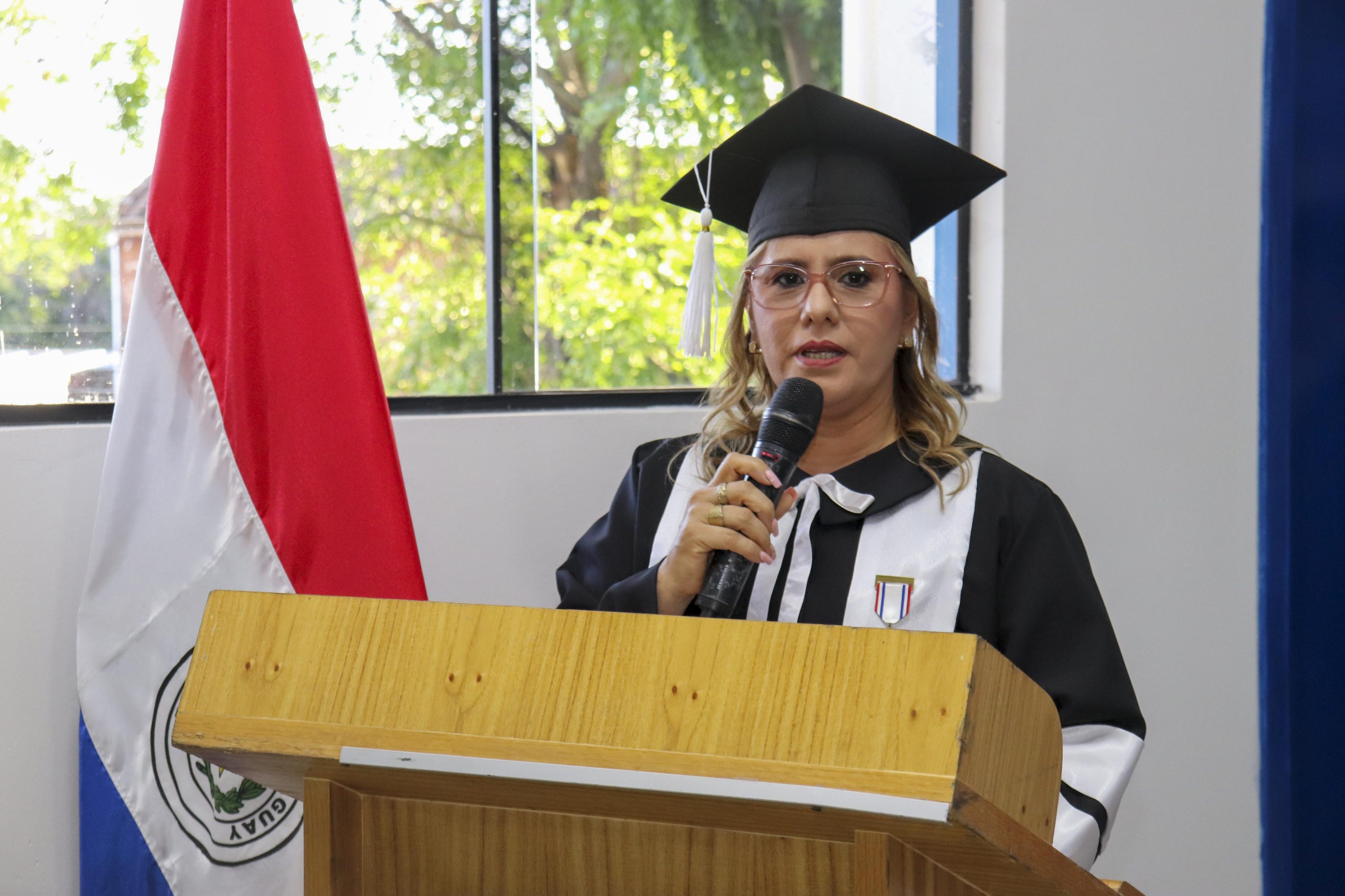 Cabe destacar que la Licenciada en Gestión de la Hospitalidad Leidiluz Benítez, graduada distinguida de la facultad, fue la encargada de dirigir un discurso en representación de sus colegas.