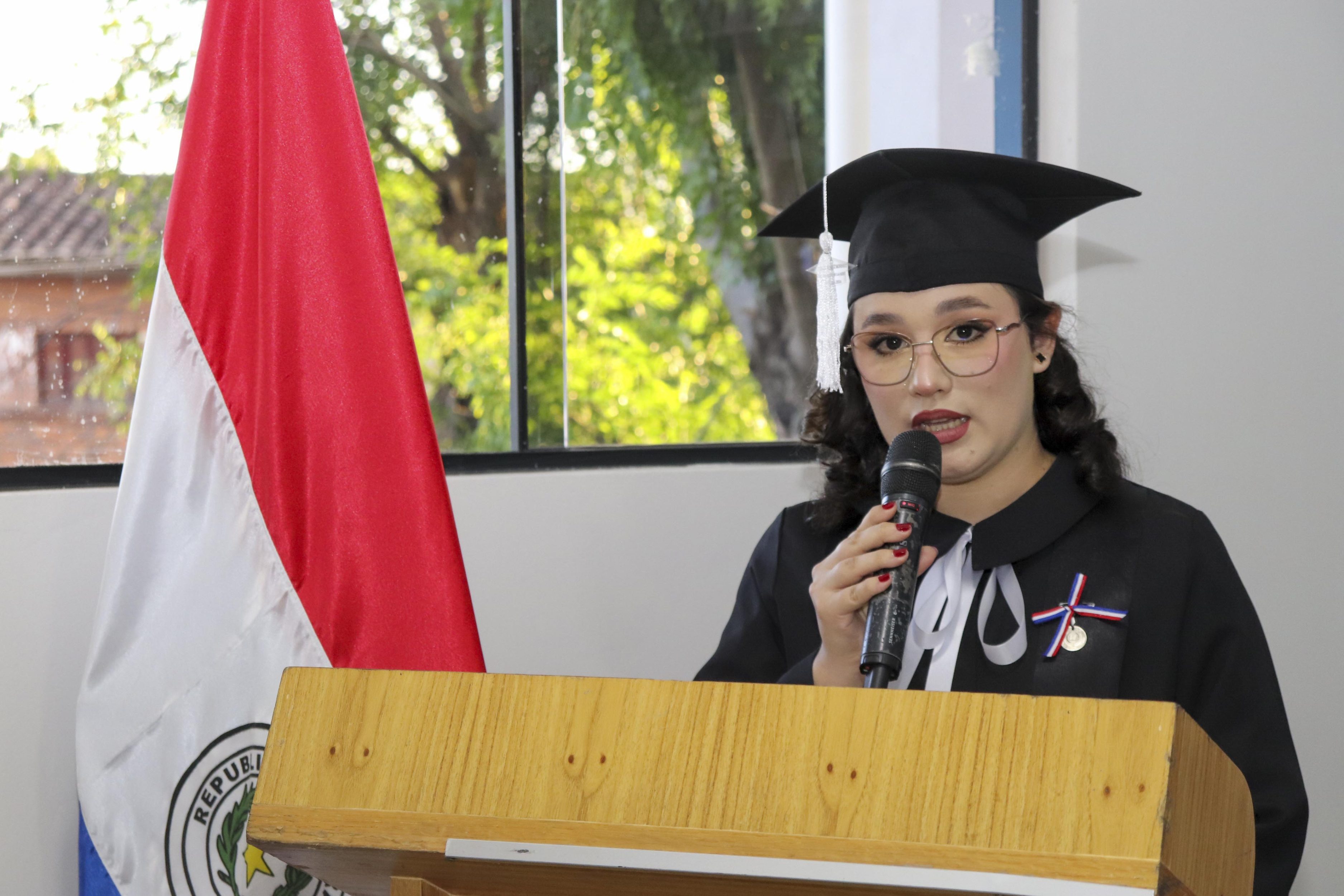 La graduada distinguida sostuvo que se celebra la culminación de un viaje académico que forjó la disciplina, carácter y visión de todos. También expresó que, si bien sus carreras son distintas, han pasado por lo mismo. Finalmente, felicitó a sus compañeras y compañeros y les invitó a mirar el pasado con gratitud.