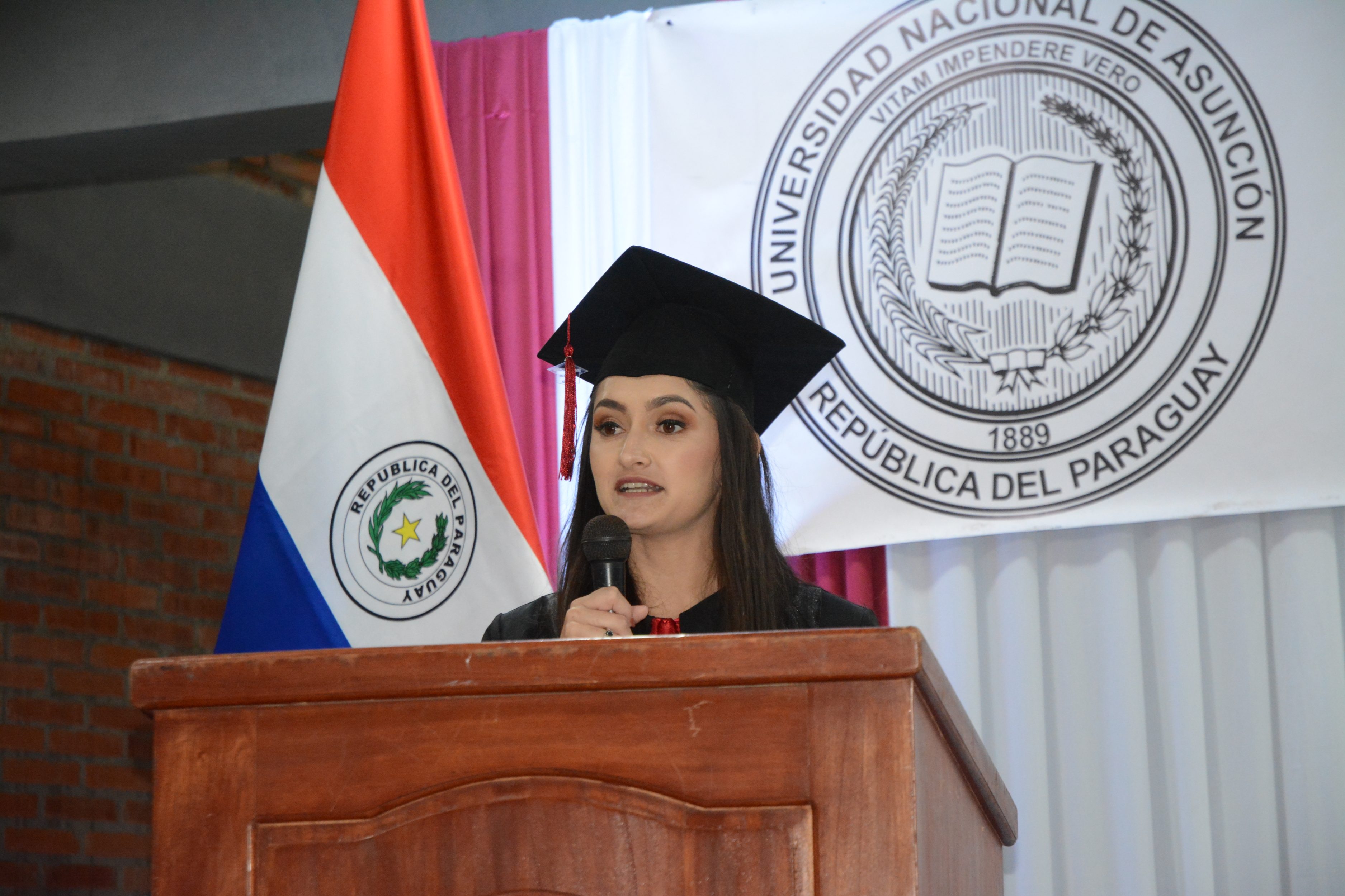 Cabe destacar que la Médica Veterinaria Serviliana Galeano Coronel, graduada distinguida, fue la encargada de dirigir un discurso en representación de sus colegas.