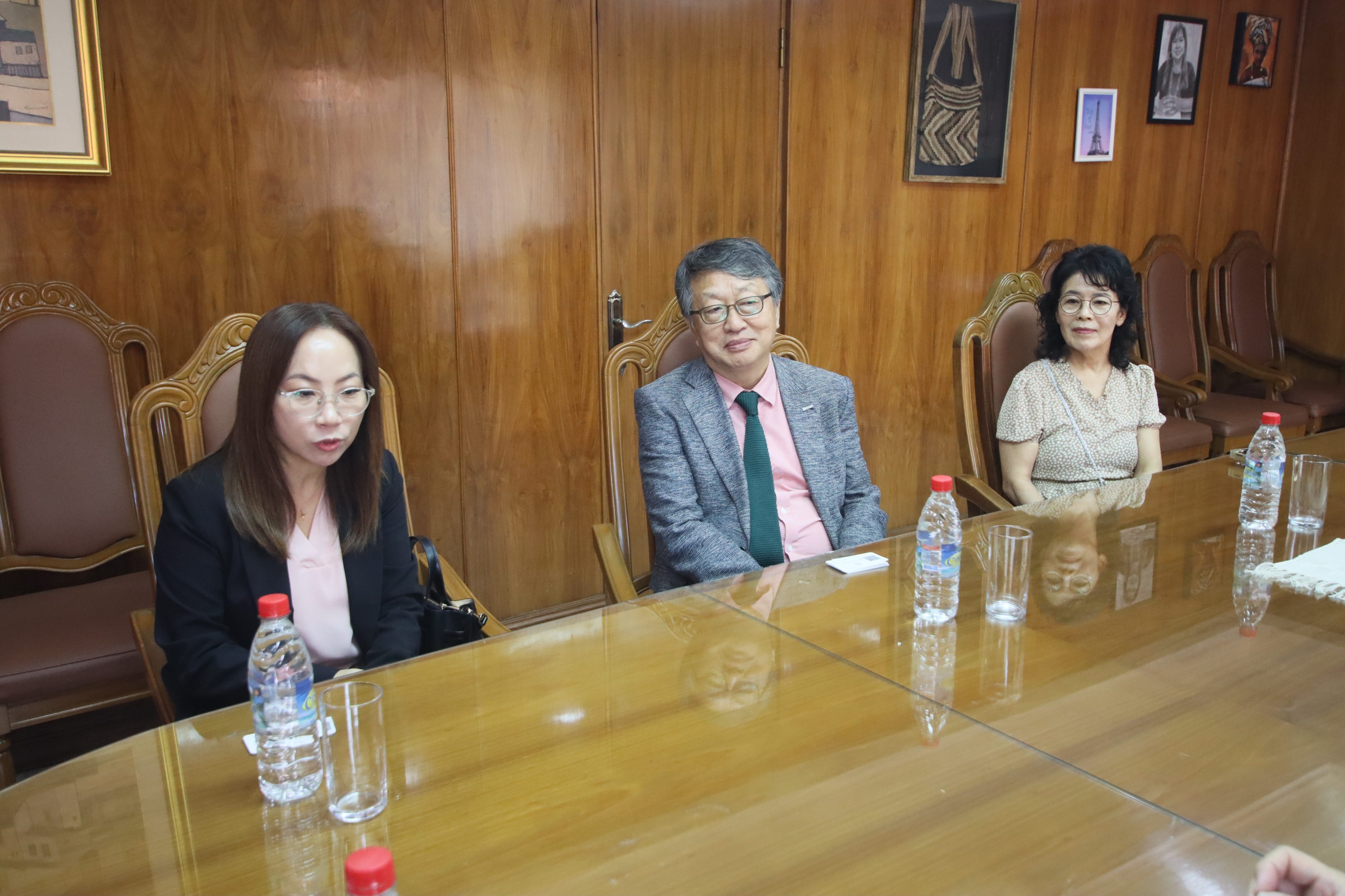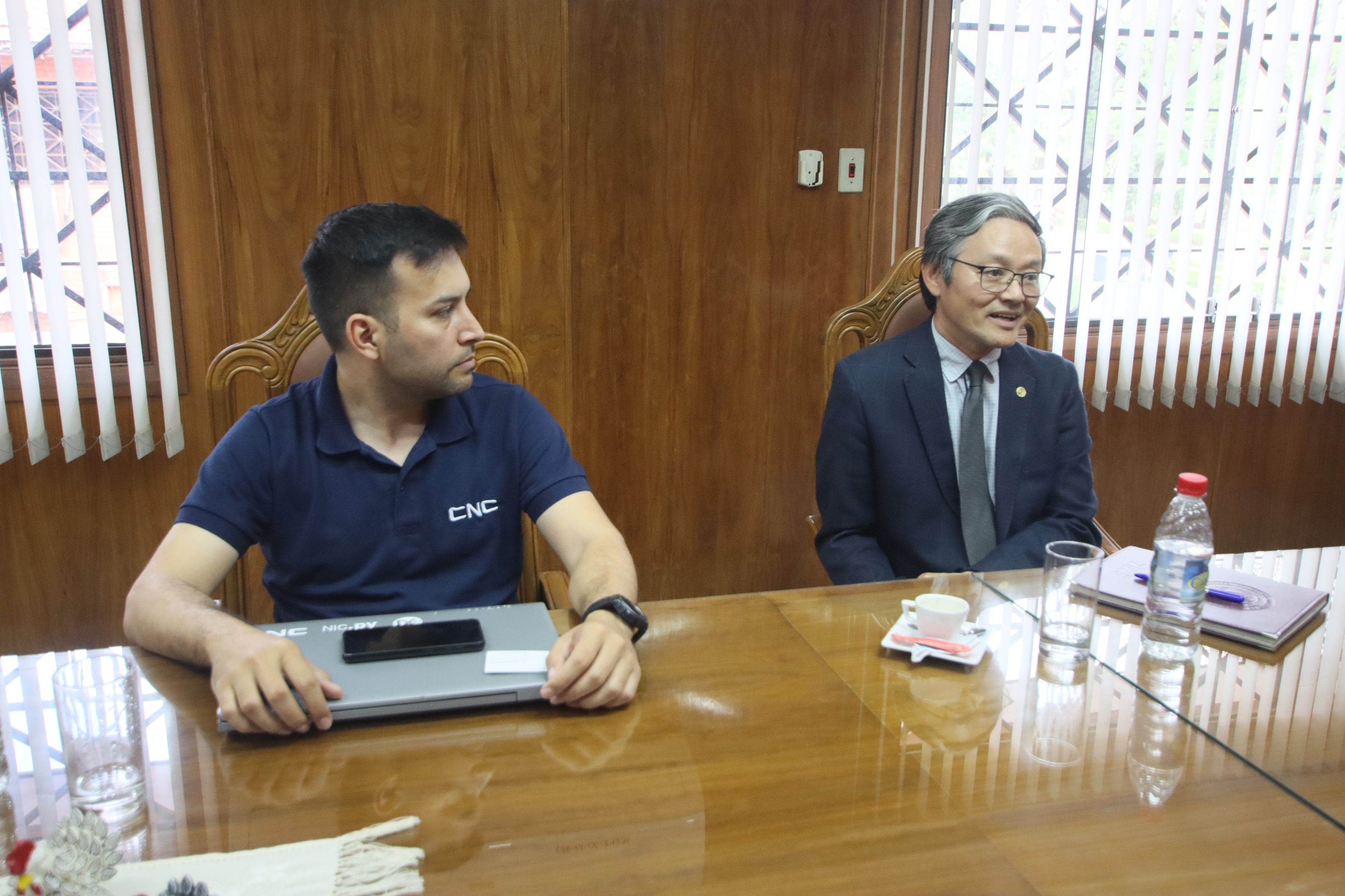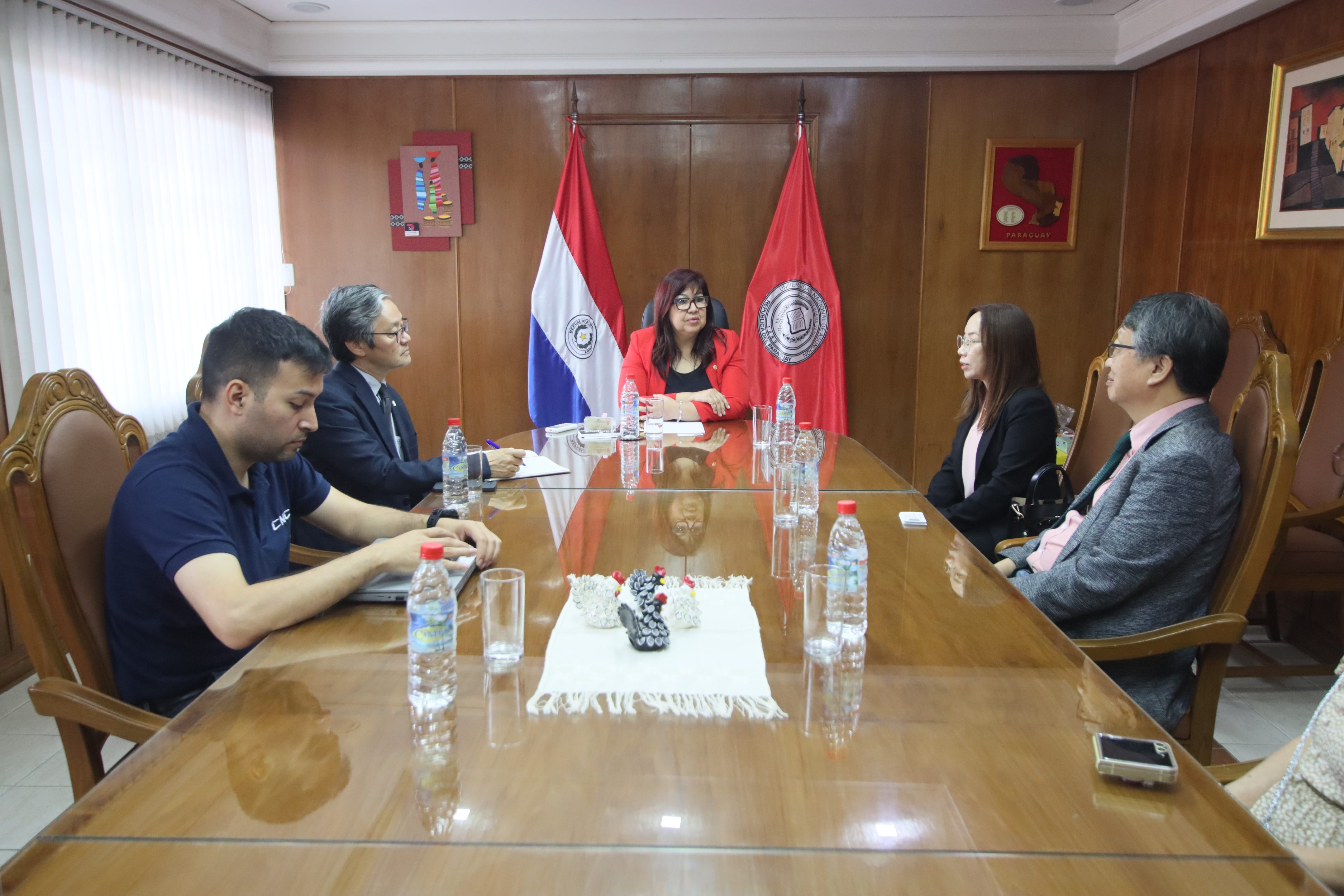 Acompañaron la reunión el Dr. Héctor Nakayama, director general de Investigación Científica y Tecnológica (DGICT-UNA); el Lic. Adrián Almirón, director general del Centro Nacional de Computación (CNC-UNA); y la Sra. Mi Ra Kim.