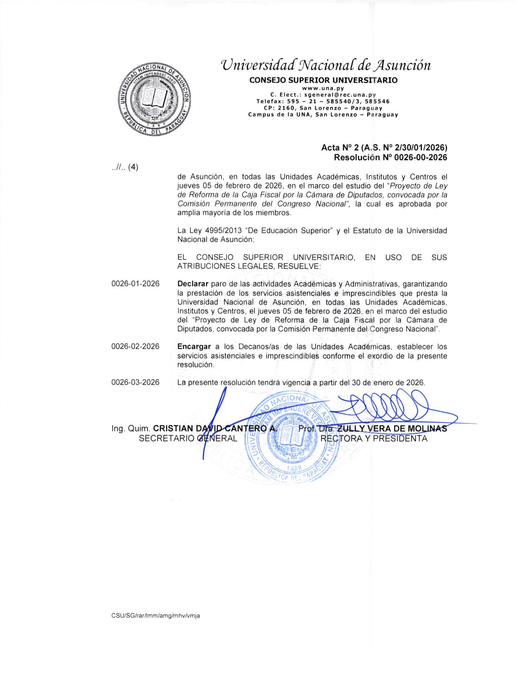 UNA declara paro académico y administrativo el jueves 5 de febrero
